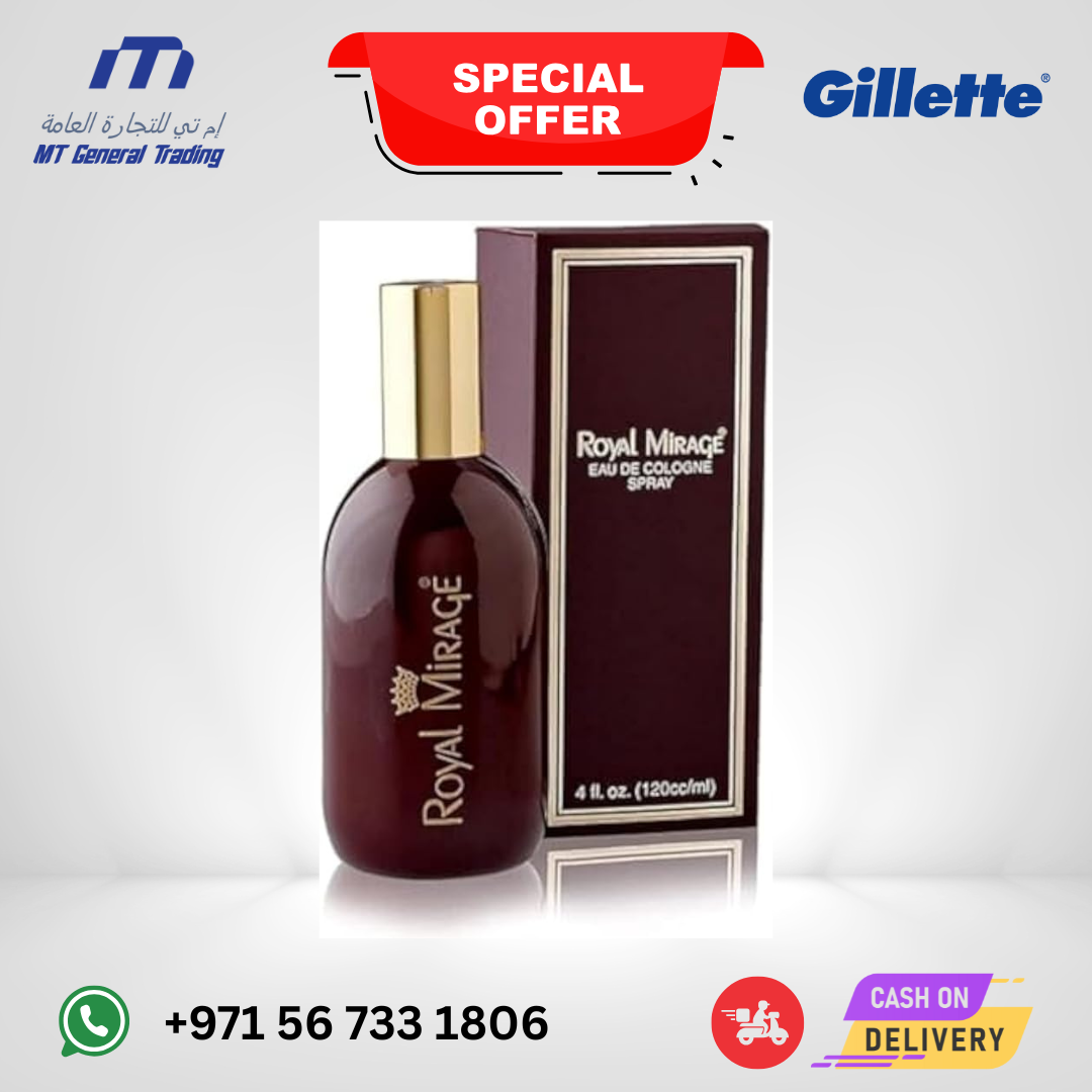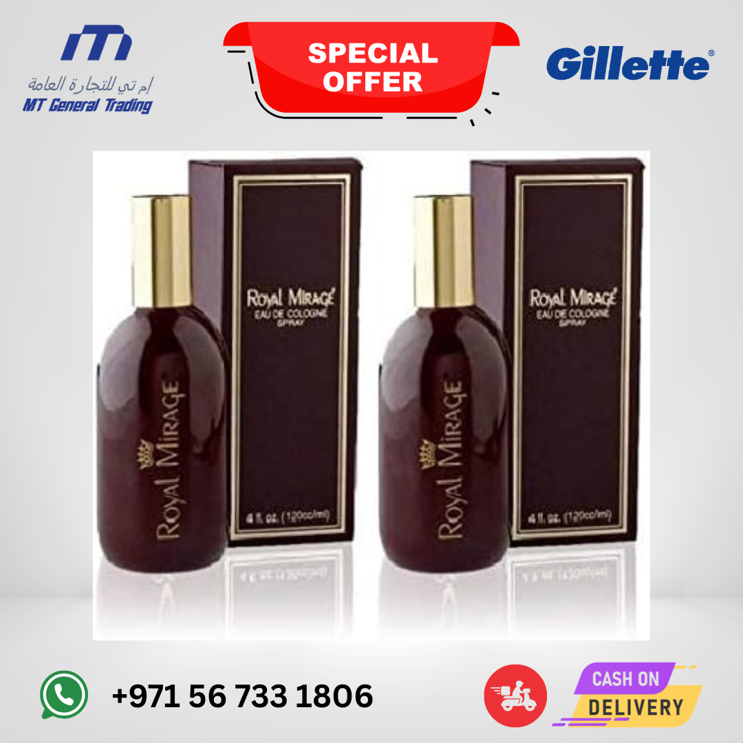 Get double the freshness with the Royal Mirage Eau De Cologne (EDC) Perfume 2-Pack, specially crafted for men who appreciate elegance and consistency in their scent. Each bottle offers 120ml of refreshing, classic fragrance, making it ideal for everyday wear in the UAE’s warm climate.